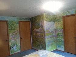 ![]() | ![]() Decorative Painting in Young girls bedroom Janie named the horse "Creamy" also included family pets and a barn. | ![]() Decorative Painting on Walls |